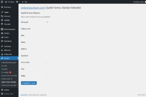 Eklentiyi indirdikten sonra, eklenti Araçlar > Üyelik Formu Alanları sayfasını zirayer ederek forma eklemek istediğin alanları seçebirsin.