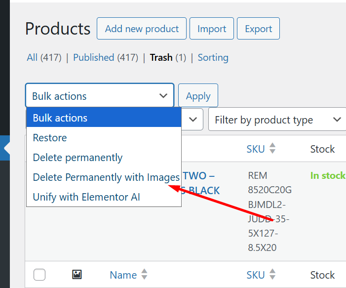 Böylelikle ürünler silinirken öne çıkan görsel, galeri resimleri ve varyasyon resimleri diksten ve wordpress ortam kütüphanesinde kalıcı olarak silinecektir.
